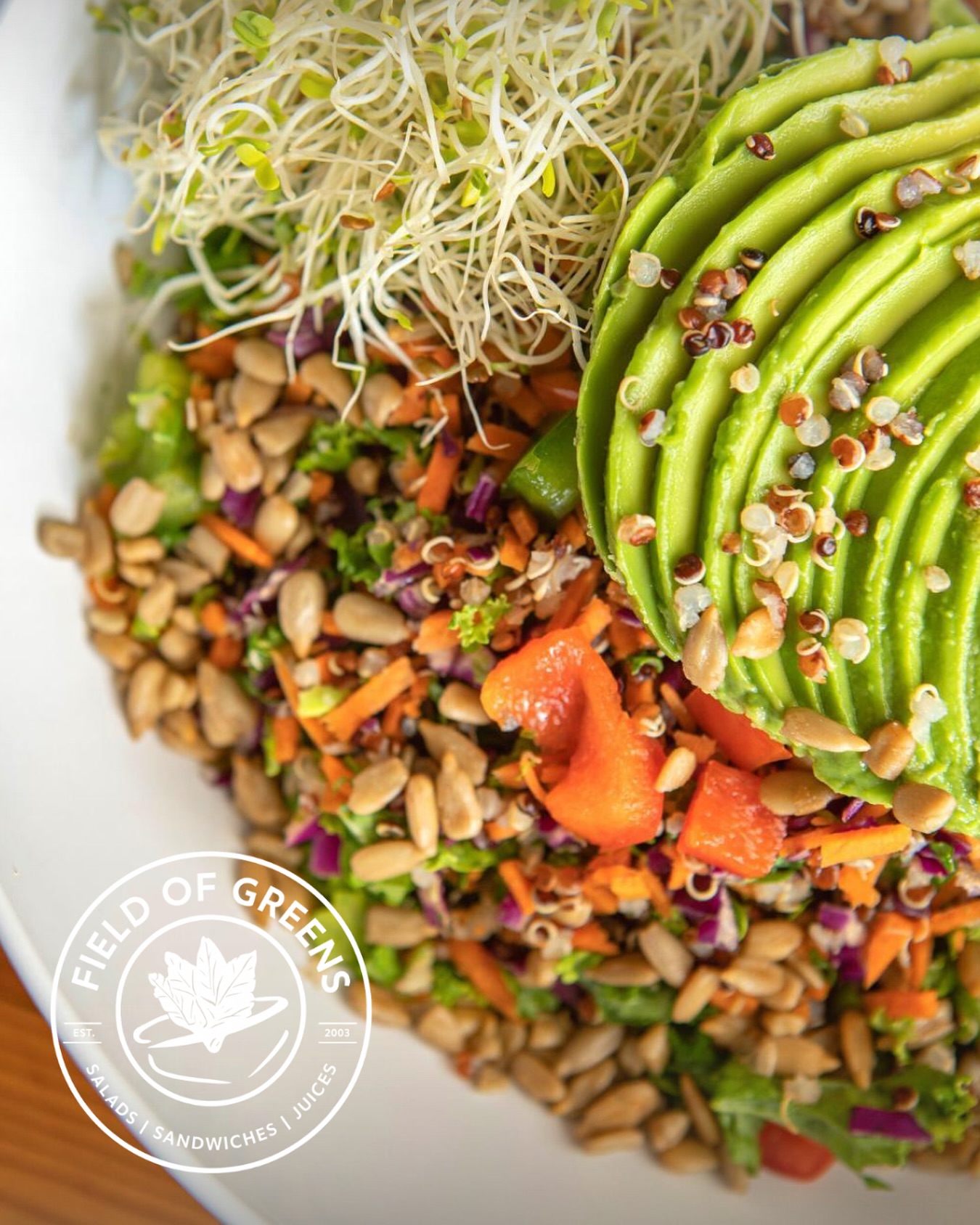 It’s not just about eating well — it’s about feeling good. 🥗 A fresh salad and juice combo makes lunchtime something to look forward to #fieldofgreens #healthyfood #palmbeachcounty